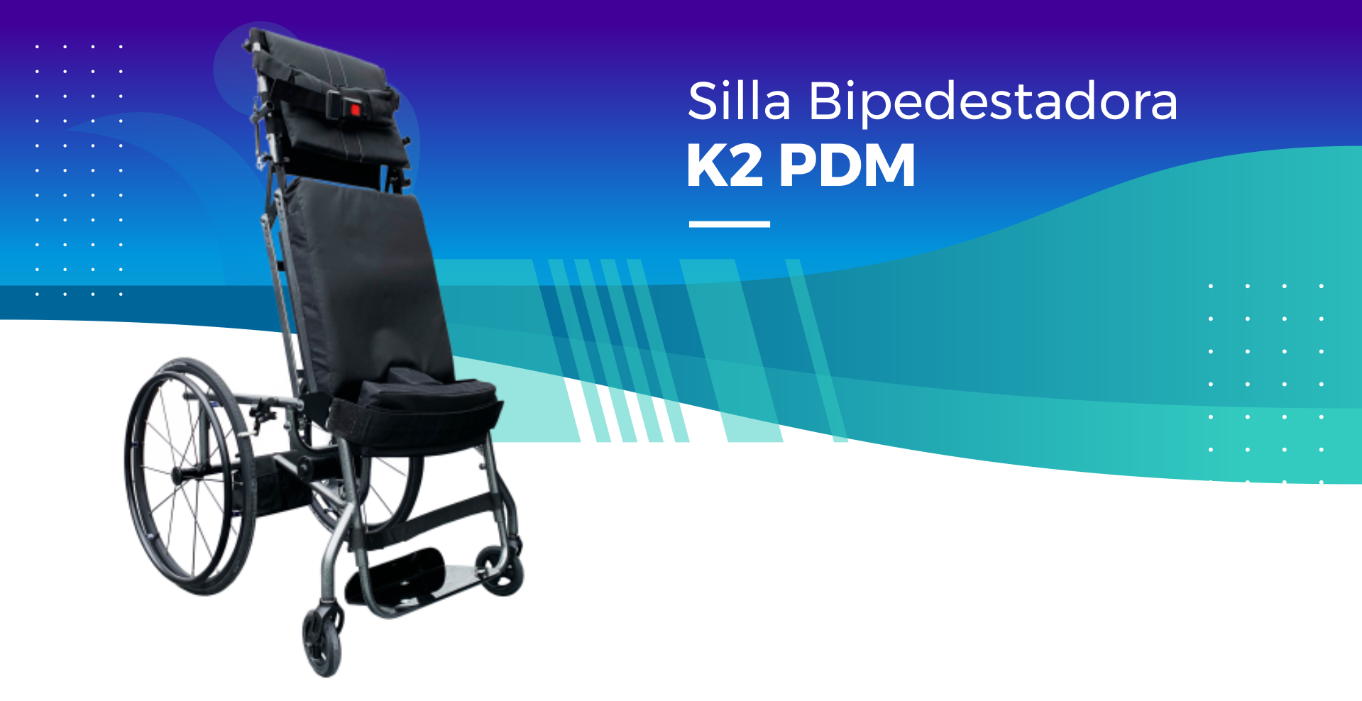 La silla K2 es nuestro lanzamiento mas reciente, la silla para ponerse de pie más ligera, compacta y económica de la línea. Es el híbrido perfecto entre una silla de ruedas activa y un bipedestador.
