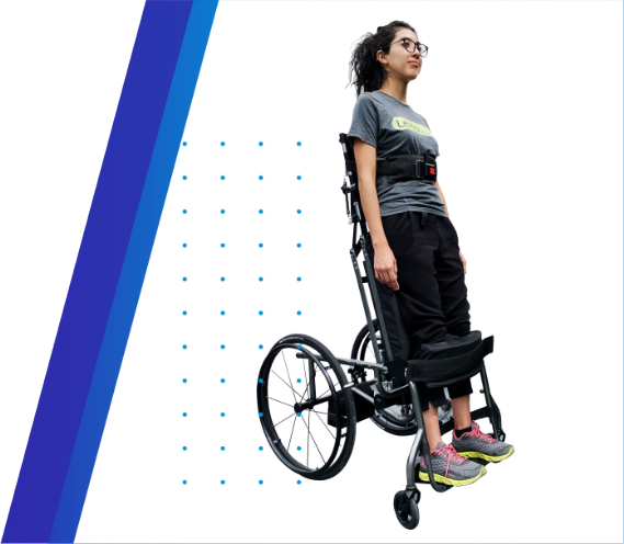 Se requiere control de tronco y miembros superiores moderado para desplazarse por si mismo en la silla. Para ponerse de pie basta apretar un botón. Se recomienda para usuarios con Lesión Medular o Espina Bífida.