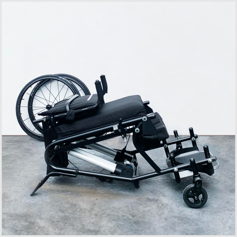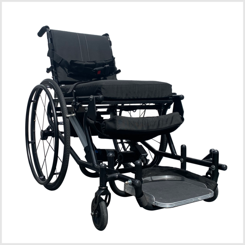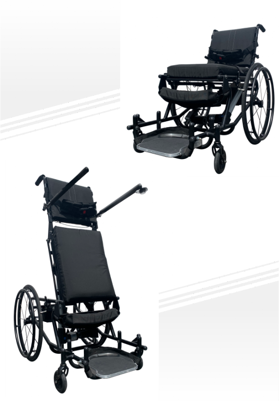 Se requiere control de tronco y miembros superiores moderado para desplazarse por si mismo en la silla. Para ponerse de pie basta apretar un botón. Es recomendada para pacientes con Lesion Medular, Espina Bífida, PC, ELA, AME, ente otros.