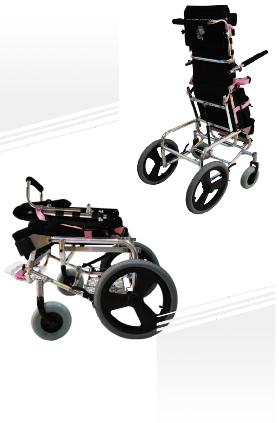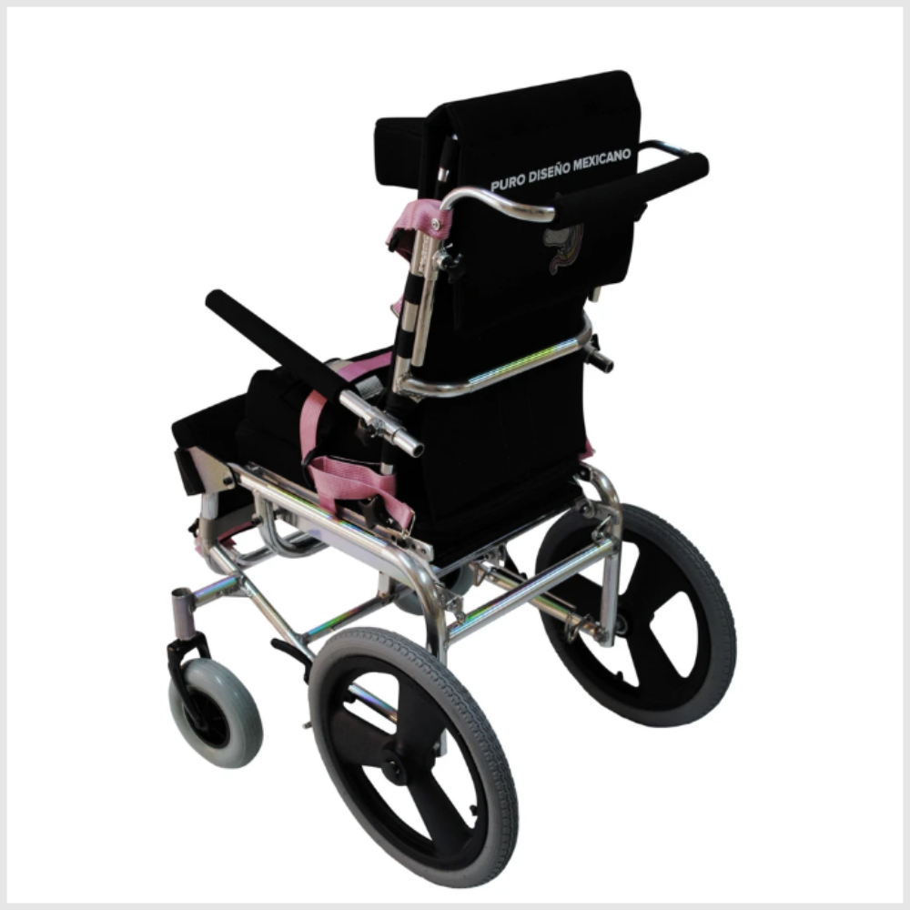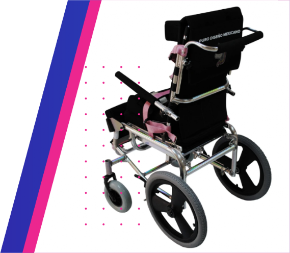 Cada silla es confeccionada a la medida del usuario para asegurar máxima comodidad y seguridad al ponerse de pie; es totalmente diseñada y fabricada en México y se puede personalizar con distintos rodamientos, cinturones, tipos de respaldo, cojines, soportes, pecheras, etc.