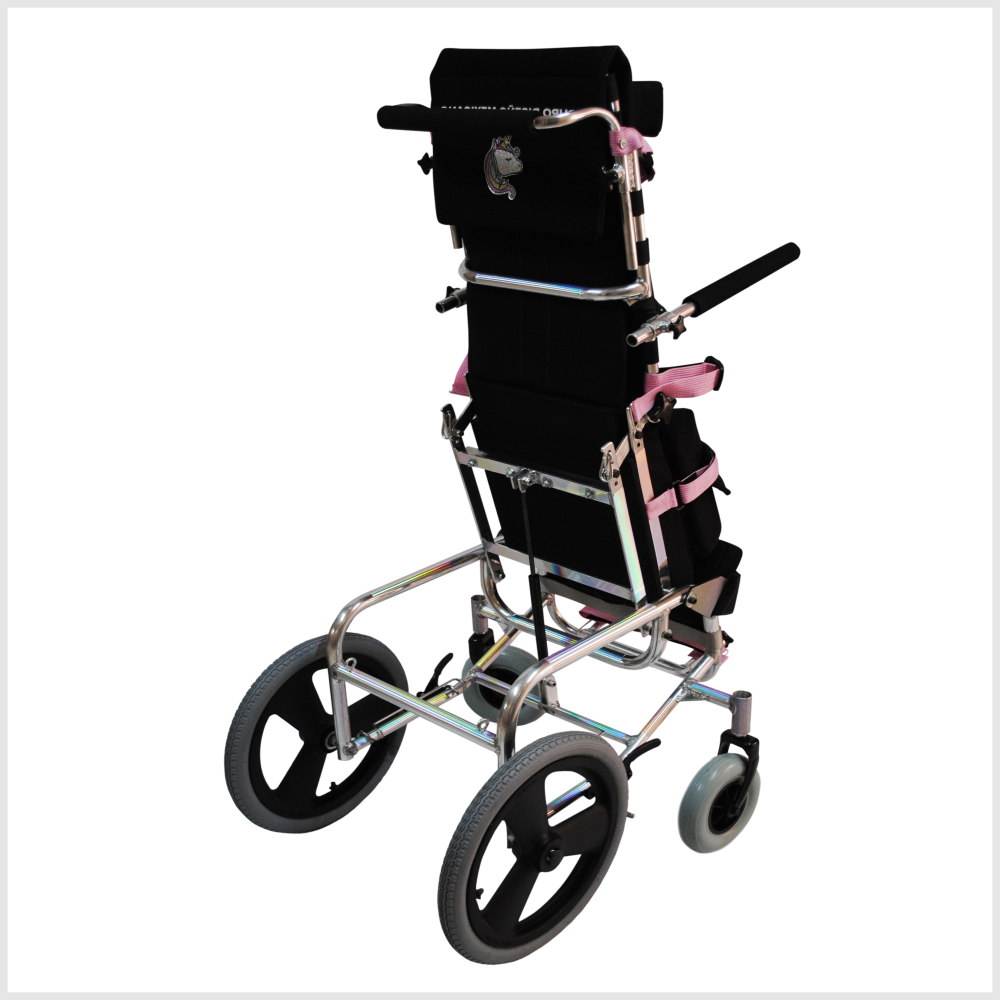 La silla Unicornio fue diseñada para ser nuestra opción más ligera y compacta en sillas bipedestadoras infantiles. Su mecanismo manual para ponerse de pie permite parar y sentar de vuelta al usuario con facilidad y sin esfuerzo.